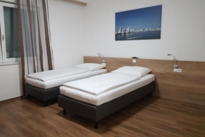 Unsere Einzelzimmer mit geräumiger Dusche/WC verfügen über eine Wohnraumlüftung, Fußbodenkühlung im Sommer, Netzwerkanschluss RJ45, gratis WLAN, Smart TV 48 Zoll, Kühlschrank, Safe, Föhn, usw.